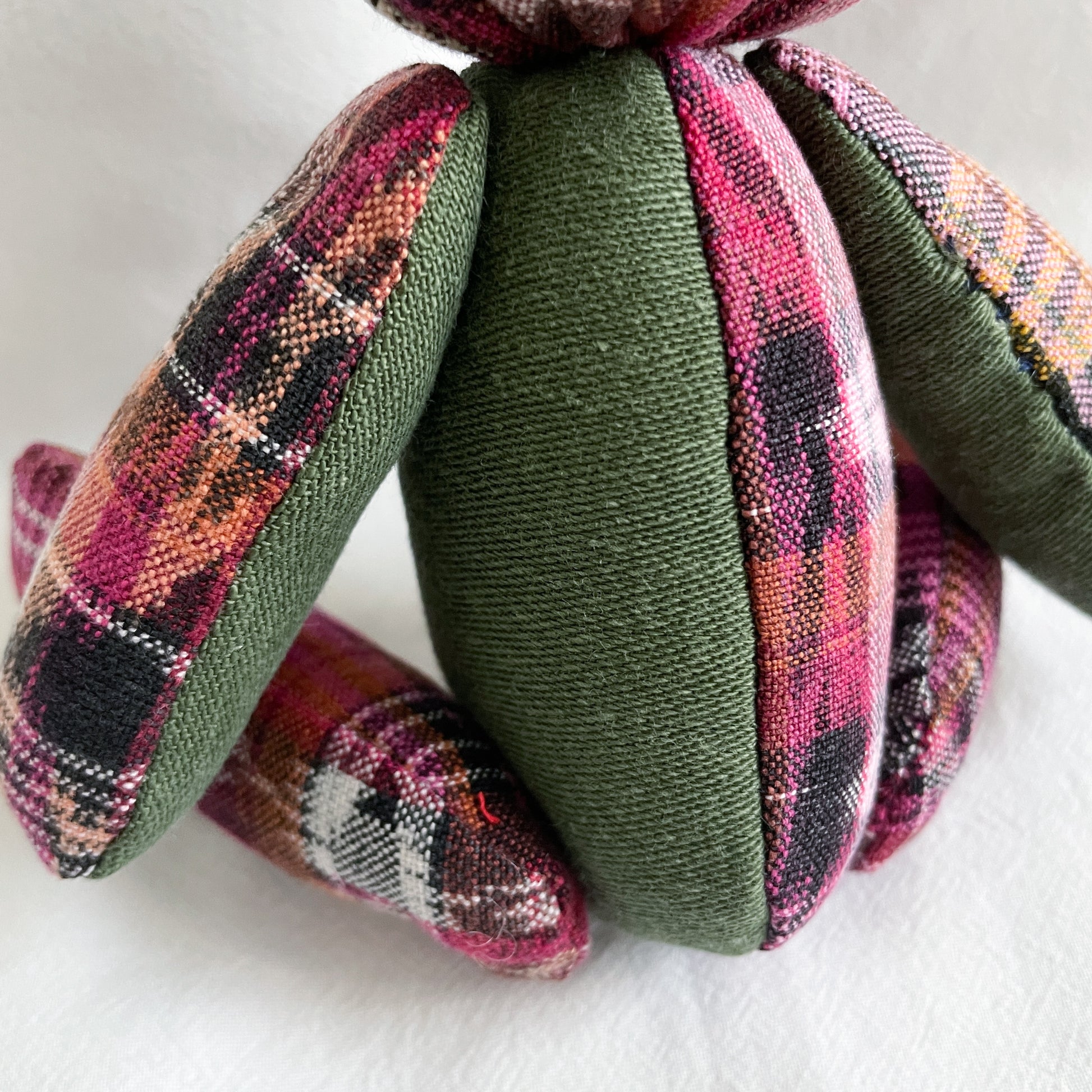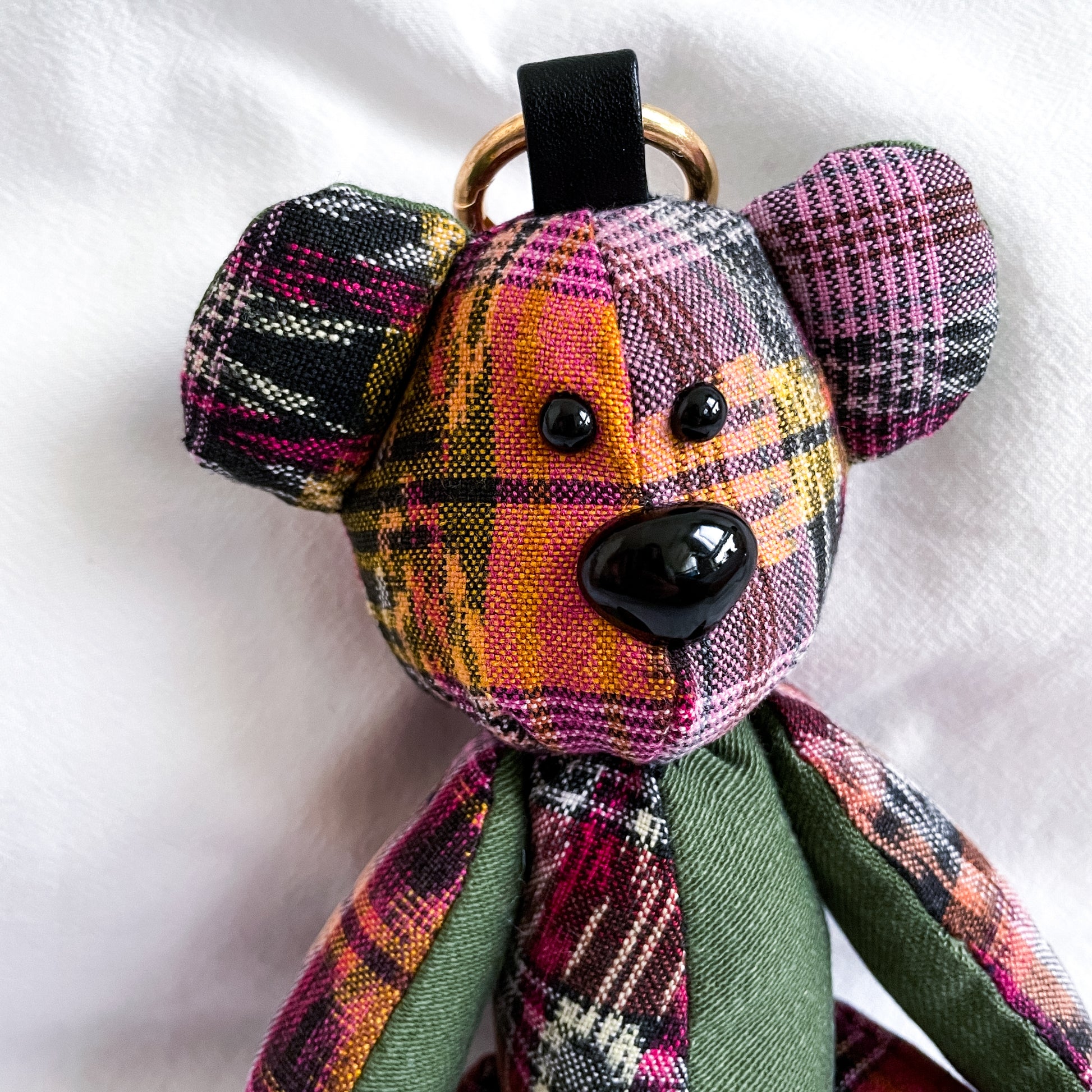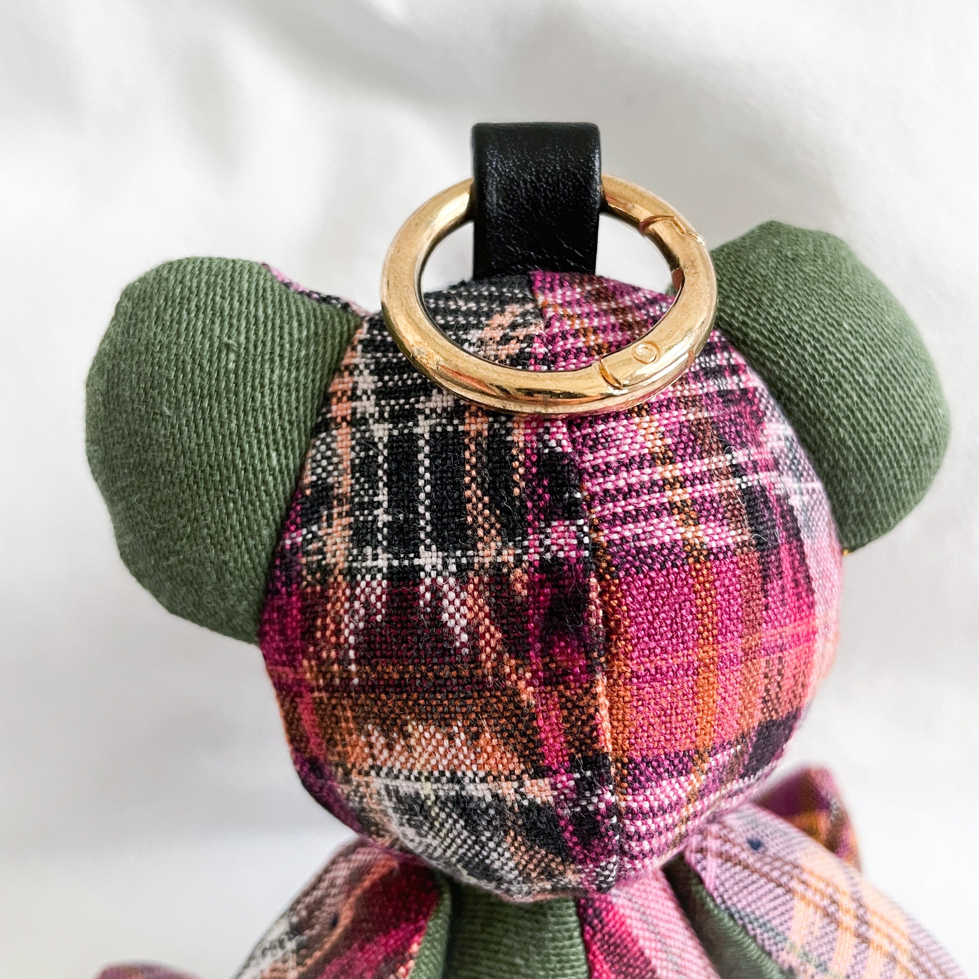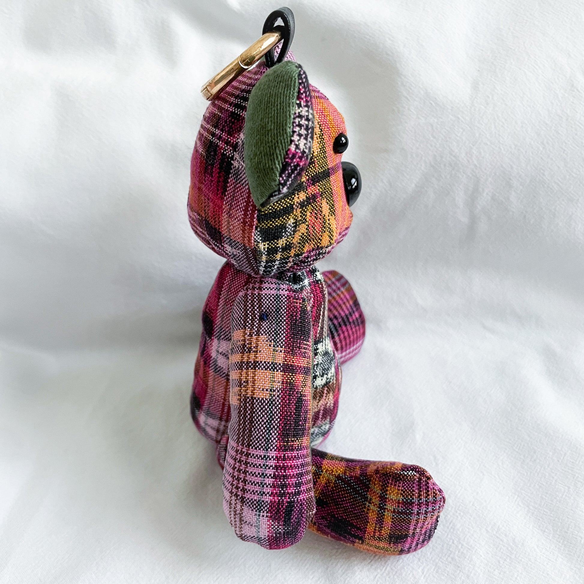 グアテマラの伝統的な絣生地とユーズドのミリタリーシャツを組み合わせて作成したくまチャーム。
