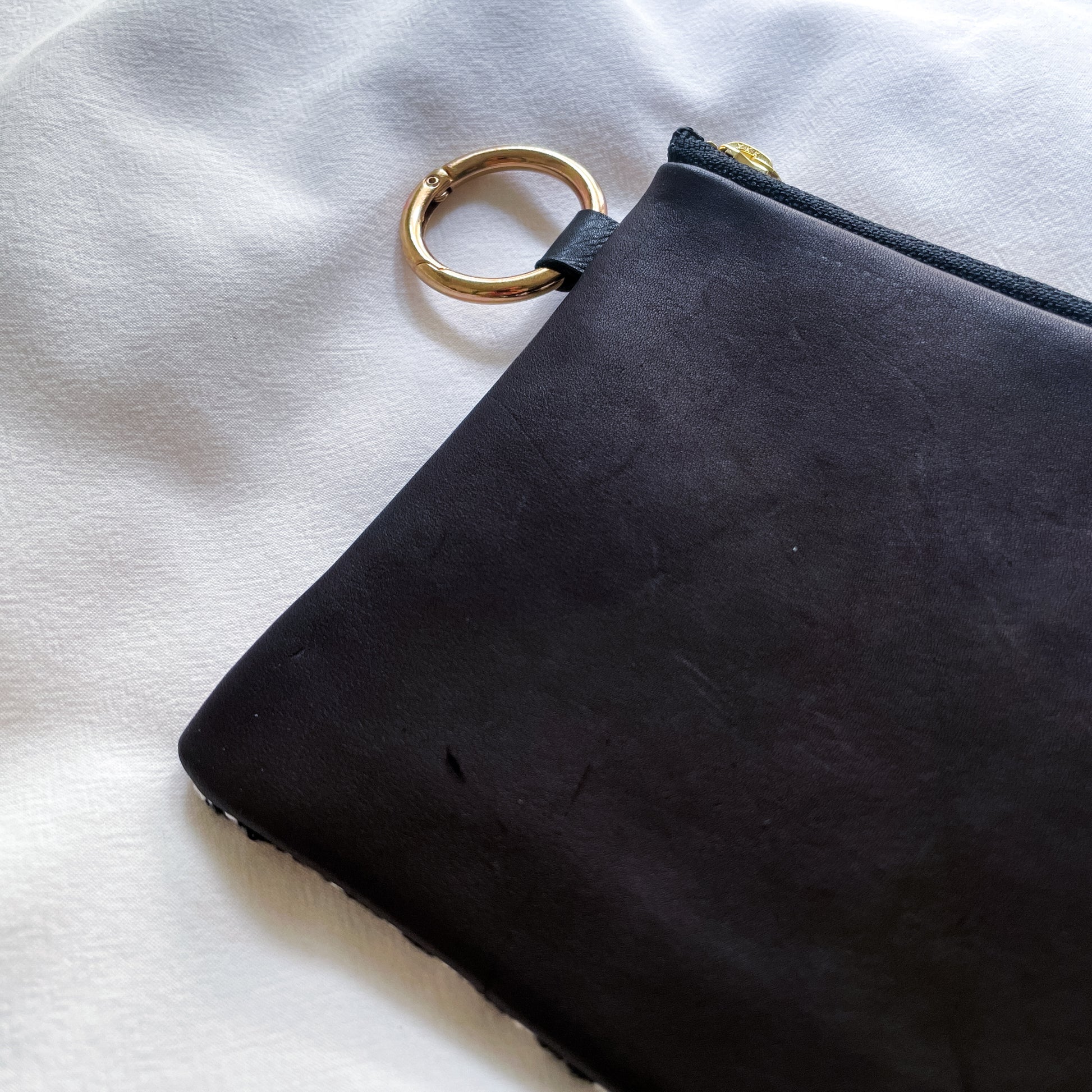 メキシコのララインサール織とレザーを組み合わせたポーチを製作しました。