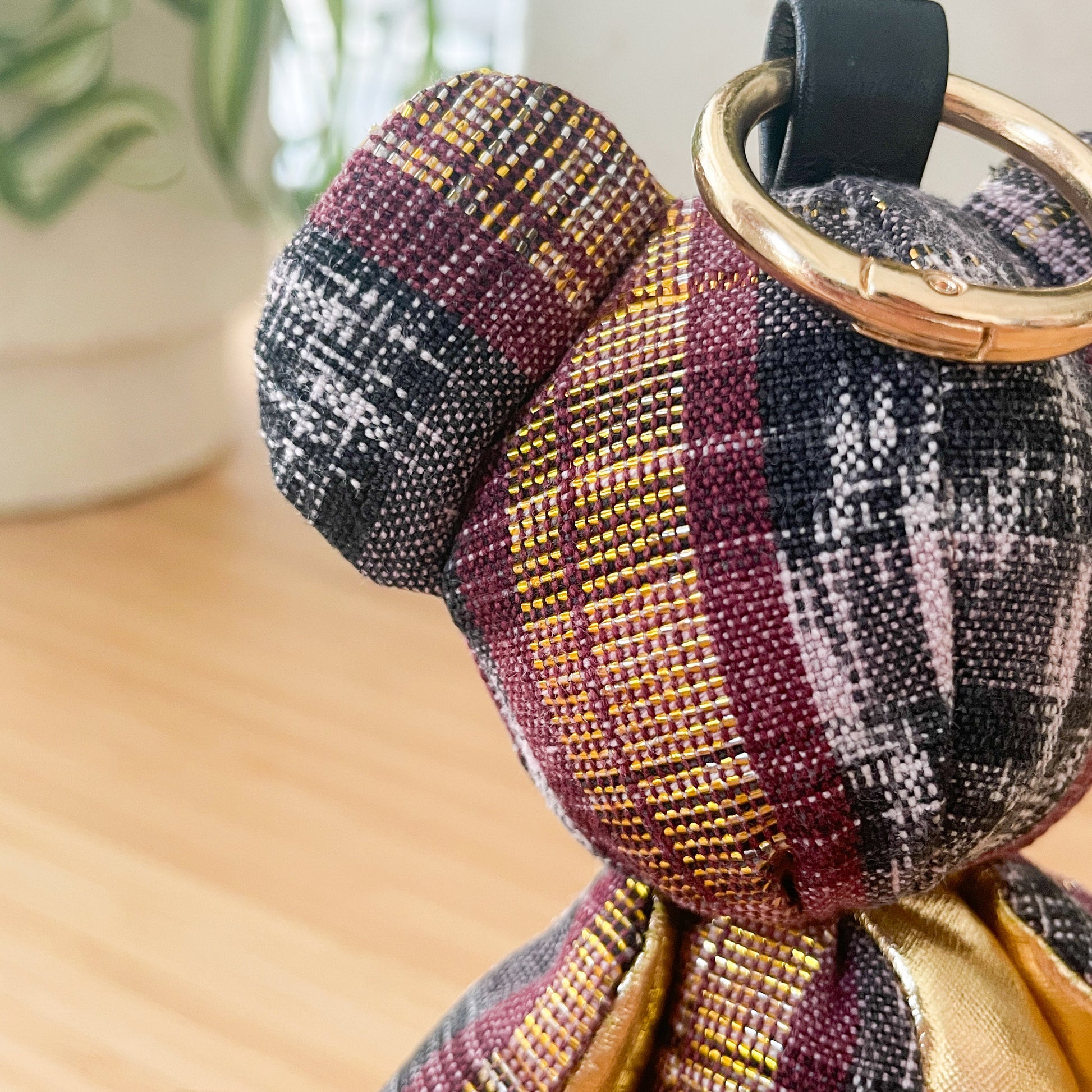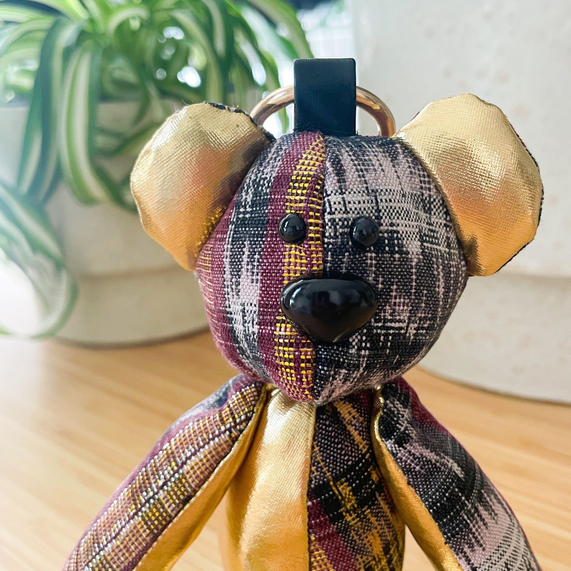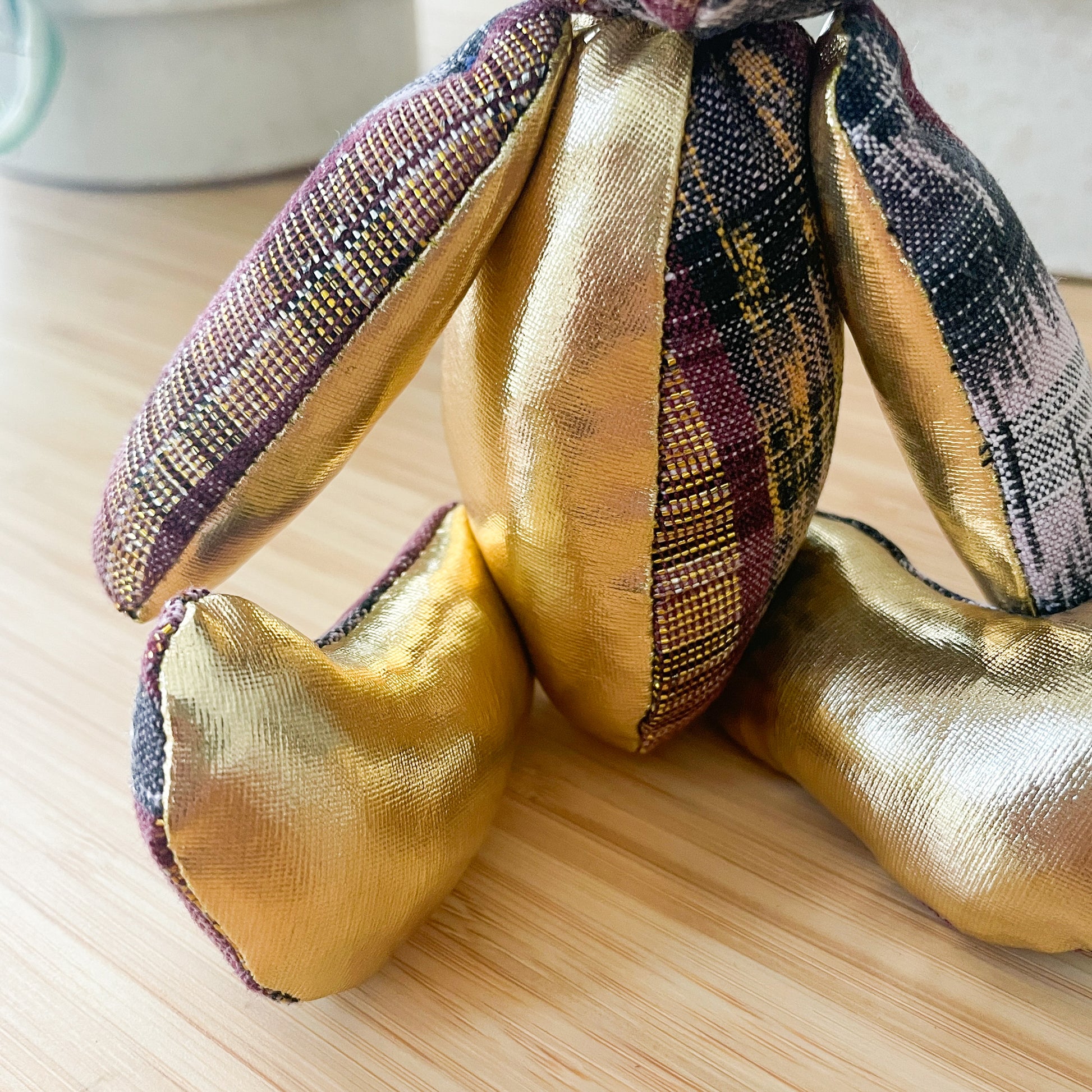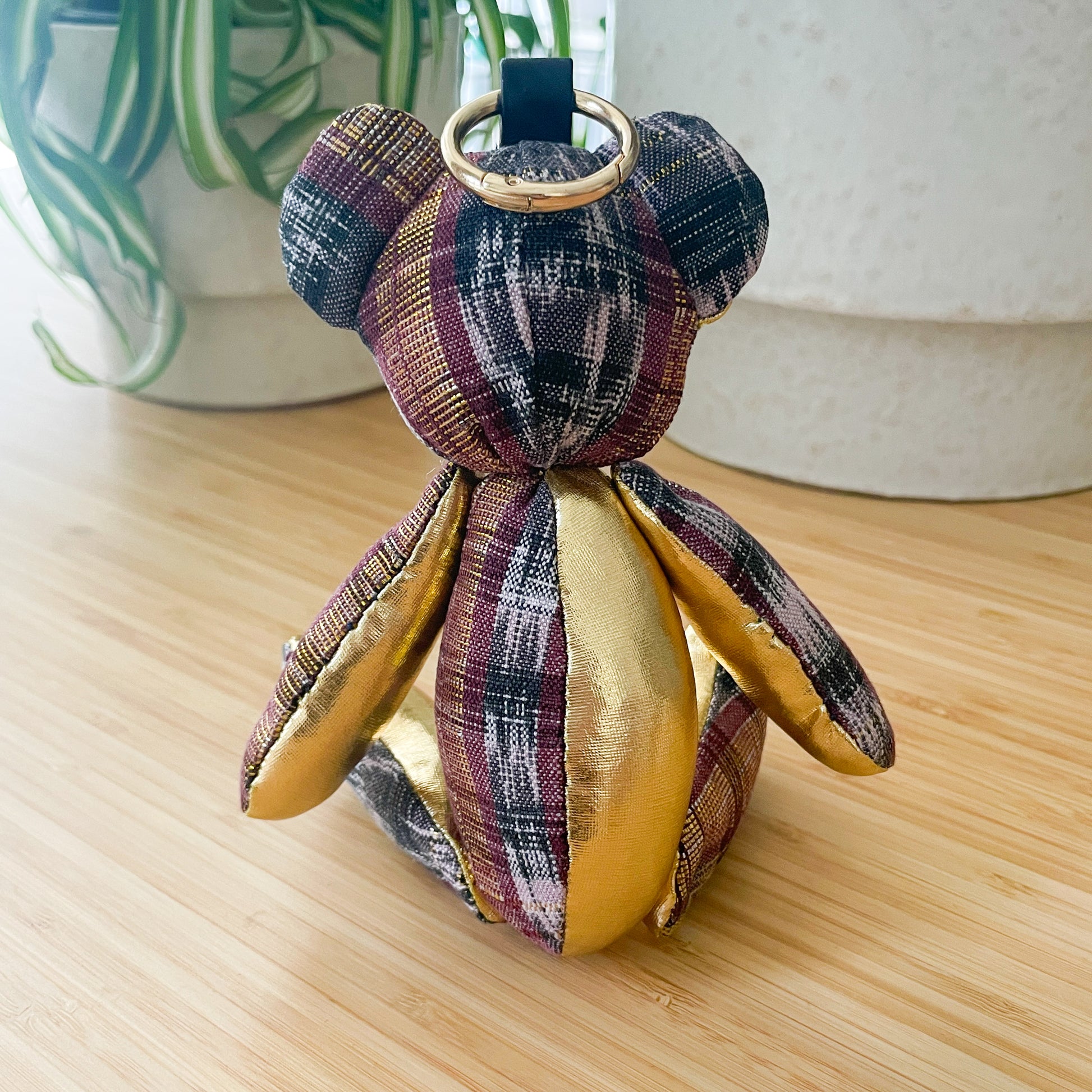 絣生地にも金糸が織り込まれていてキラキラと華やかな印象のくまになっています。
