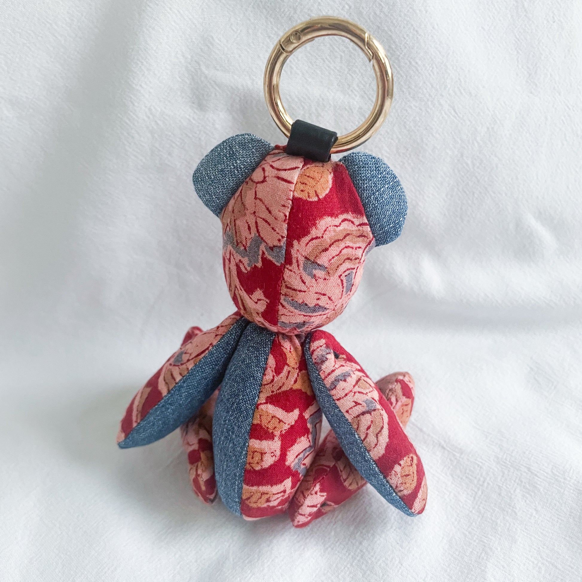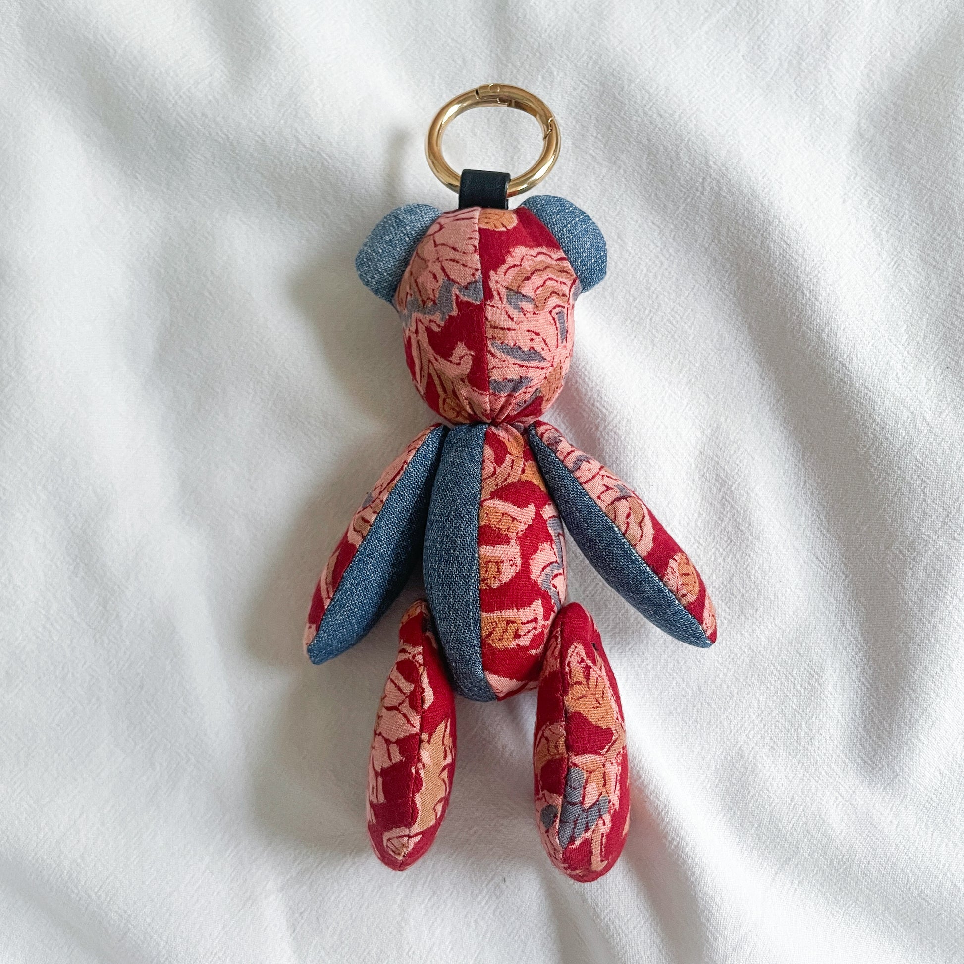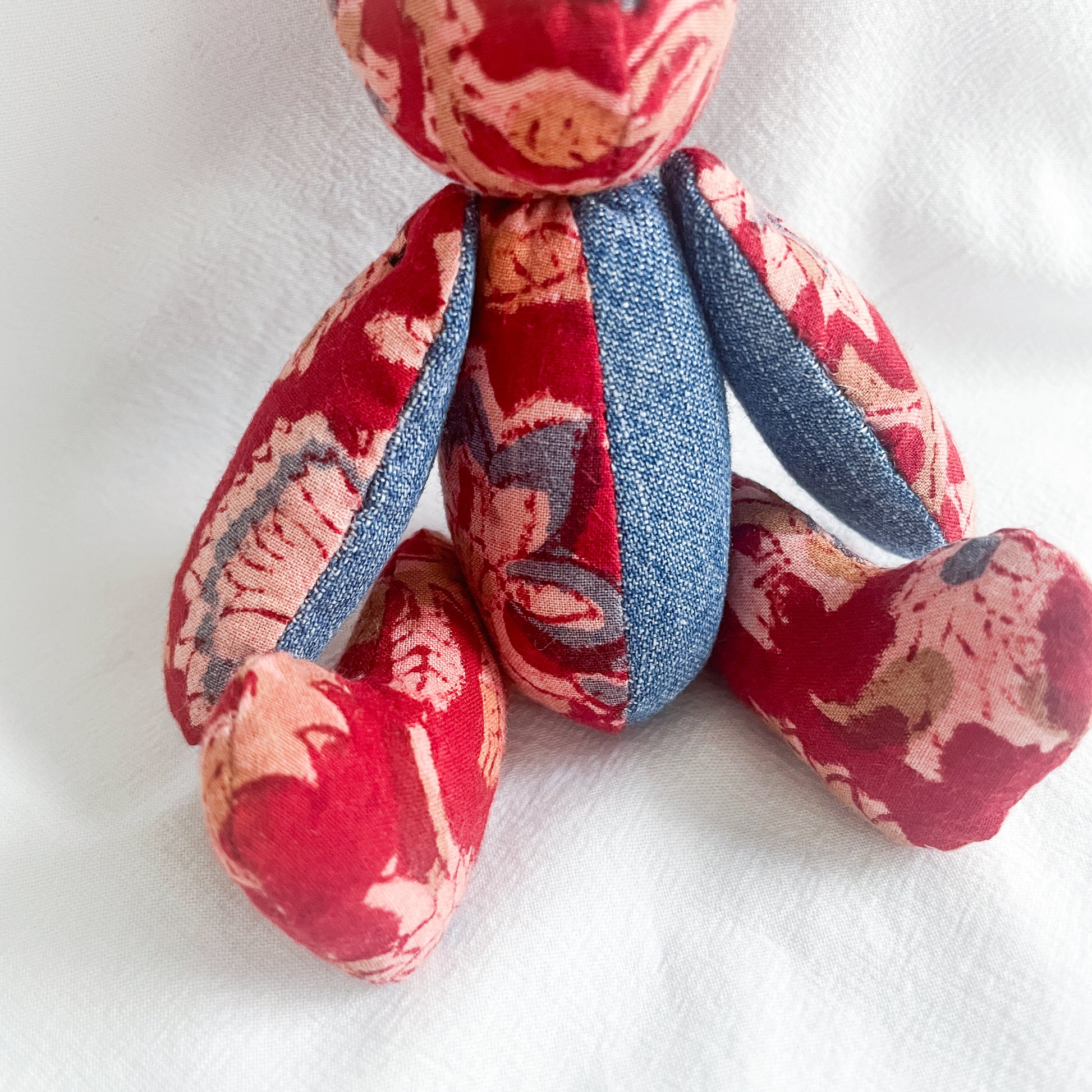 インドのブロックプリントとデニム生地を組み合わせて作成したラブベア。
